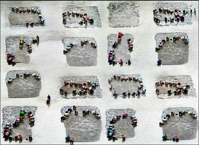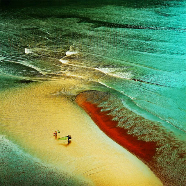 秋天 |这一片广袤的五彩滩涂将带给摄影人无穷无尽的创作激情和灵感。万物在金色阳光的洗礼下,多了一份成熟的韵味,这时候沿海全线紫菜养殖建场,拉竿挂绳,养护收割,海面船只穿梭,渔民劳作频繁,满滩满海都是竿人影船影,整个滩涂异常繁忙,正是拍摄霞浦滩涂的金黄季节。