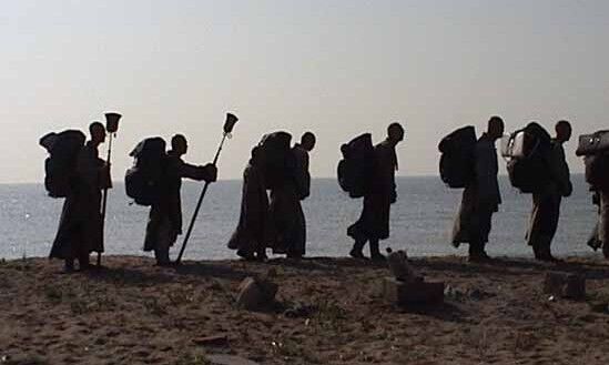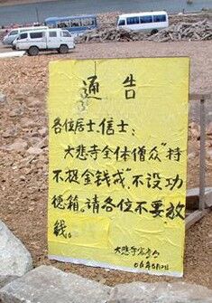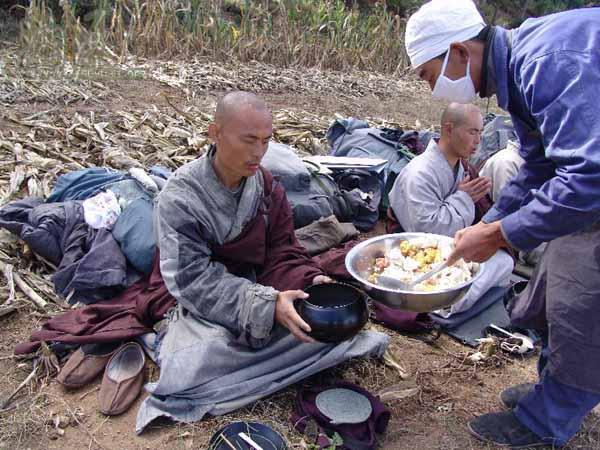 中国惊现真正的和尚,震撼!(大悲寺僧众行脚途中) 这是一个令人尊敬的僧团, 这是一个严持戒律的僧团, 佛陀戒律在此得以充分体现, 从这里开始的故事感动着人们! 辽宁海城地区的“大悲寺”,在中国大陆不设立功德箱的佛寺院之一,全体僧人持金钱戒律,日中一食。每年在4月8,7月15两次皈依。皈依居士必须背会《心经》《大悲咒》,才发给皈依证书。僧人每天早上2点钟起床,10遍楞严咒,下午2个小时读诵戒律,每天休息时间4个小时。保持佛陀制度,每年8月15开始行脚。行脚途中托钵乞食。寺院里戒律严谨,僧人威仪具足!佛陀戒律在此得以充分体现! 大悲寺常住要求: 1、不捉金钱戒 2、日中一食 3、行脚。 4、乞食。(度化众生) 5、不接客僧礼。 6、一切供养归常住。 7、三衣钵不离身(十八种物齐备)。 8、不化缘、不求人。(有求皆苦,无求苦才逐渐息减。心不攀援方能人心死道心生) 注:在本道场修行者,要求做到,听话、干活! 佛陀弃太子位,出离皇宫,衣尸布,食乞食,卧草铺,建立比丘僧团,制定四众弟子清净戒律。律定僧人吃乞食,一日一餐,穿粗布坏色打上补丁的百衲衣,不准手触金银,不准听歌观舞,不准戴金银珠宝首饰,不准戴花涂香,不准坐高垫大床,不准住超过一方丈的大房等等。上述佛陀的生活方式和对出家僧人的要求都充分体现了一个离贪离欲的高尚道德原则! 不由的使我想起了经典所记载的,世尊曾力辩外道使其一一折服,外教一婆罗门对世尊言道“此时我无奈何于你,但千年之后我的徒子魔孙将会穿上你们的衣服拿上你们的经典、衣钵,混入你们的队伍来将佛教彻底摧毁。”世尊听罢,默不作声,黯然垂泪。 关于大悲寺的一些事情: 1. 一位僧人从五台山行脚回辽宁,2个多月时间。为遵守戒律不住旅店,(他们也没有钱,都是持金钱戒律)在乡下柴草垛、树林、桥洞过夜。中午托钵乞食。路过繁华之处,目不斜视,低头观自在。走出好远,后面有人大声说道:“看啊!那才是真正的出家人,连头都没有抬一下、、、”到某家乞食,一老头抬头不说话,掏出5元钱,递了过去。僧说:“出家人不要钱,素饭菜就行。”老人的手一时收不回去,愣愣的发呆之后,大喊一声:“快!多盛点饭”。 (化缘回来的食物全部拿出来平分) 2.寺院里的僧人外出在火车上,如果遇到身边、周围座位有女士,当即离座而去。到车厢交界处。感动服务员,主动调换座位,保证僧人身边都是男众。而且端坐一宿,日一餐!感动很多不信佛的人,主动给钱、给物供养。当听说出家人有不摸金钱戒律,不要钱。用他们的行动,使整个车厢的人为止震动,感叹、敬佩!当知道眼下的僧人是个画家出身,深渊的学识。并非,生活的挫折所迫而出家,彻底对佛家思想、僧人有了新的认识! (行脚途中) 3.这里的僧人持金钱戒律、日一餐,是不是标新立异?”师答:“戒律有明确规定,不让收某某之类的供养,就是不捉金钱戒律。日一餐,也是戒律规定的。不是什么标新立异,我们要坚持的就是佛陀戒律。不守戒律,就是魔。只有魔不喜欢佛陀戒律,来任意的破坏!这也是,目前曲别是否是真正修行人的标准。他说的法再好,不守戒律,魔头一个、、、吃得越多烦恼越多、妄想也多,很多疾病都是饮食上来的。你吃多了还能够打坐吗?呵呵,怎么样,感觉到了吗”。 4.在大悲寺看不到盆子里面有动物的图案,问原因,师答:“一切众生我之父母,怎能够不尊重”。大悲寺用的鼓,僧人把原先动物的皮,拿掉埋入土中。在点点滴滴中,都能体验戒律、慈悲心的存在。为什么要如此,僧说:“以戒律为师,不是在嘴上,而是在行动上。不守戒律就是魔,只有魔不遵守佛陀的戒律,来破坏......” (慈悲埋众生) 5.妙祥师父在行脚的途中,遵守戒律不住旅店,在树林、桥洞、过夜。有一次,在农村一户人家的草垛边,有弟子拿了些草,给妙祥师,师勒令其送回。一次乞食中,弟子乞讨的饭掉到地上,满是泥土、沙石,就直接倒在旁边的鸭子食盆中,想给鸭子吃了。师知道后,马上到鸭子食盆中捡起来,用水洗后吃掉。说:施主的供养,给他们种福田,当知道因果 (行脚时天桥下住) 6.多次问方丈妙祥师父修行的过程,其说很惭愧,就不再说了。后来得知,打精进佛七120不躺下(困了,就用一块木板垫到后背,靠墙站立。等刚要入睡,木板掉下来,就继续);念佛七,80天不起身,不躺下......在本溪茅棚闭关3年。在闭关期间,有徒弟前来,走到山腰捡到一个木棍,用来做拐杖。师父在关中,写下纸条,让护关人,前去迎接,并转告来人,把木棍放下。 (行脚途中休息缝补剃发) 7.一位在大悲寺住了多年的居士告诉我,师父们的持戒精严撼动了不知多少官员、大款。有的跪在师父前要供养金钱,师父说不要。想供养师父几座殿宇说可以派驻多少现代化工程车辆来施工,师父说自己的弟子能盖。师父是想多给弟子们一些造寺院的机会来修行锻炼,来积攒出家的福报资粮呀。听了这些泪如雨下。 8.植树造林 零九年春,居士供养了近两万棵树苗。有的是抗旱耐寒树种,很适合种在水库对面寺院承包的荒山上。各地居士闻讯后,纷纷自发组织起来到寺院栽树。近一点的居士有海城的、沈阳的、大石桥的,远一点的有本溪的、辽阳的,更远的有秦皇岛的居士等。还有下院道源寺尼众,也特意挤出时间来大悲寺栽树。近两万棵树苗,没几天功夫就栽完了。树苗长在山上,善根深深扎在居士信众的心里。这两万棵树苗对荒