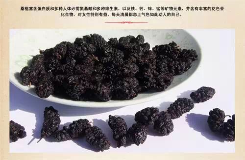 中医指“桑葚者,桑之精华所结也”,所以是补血佳品,无论生食、浸酒。或作汤 剂都可以。