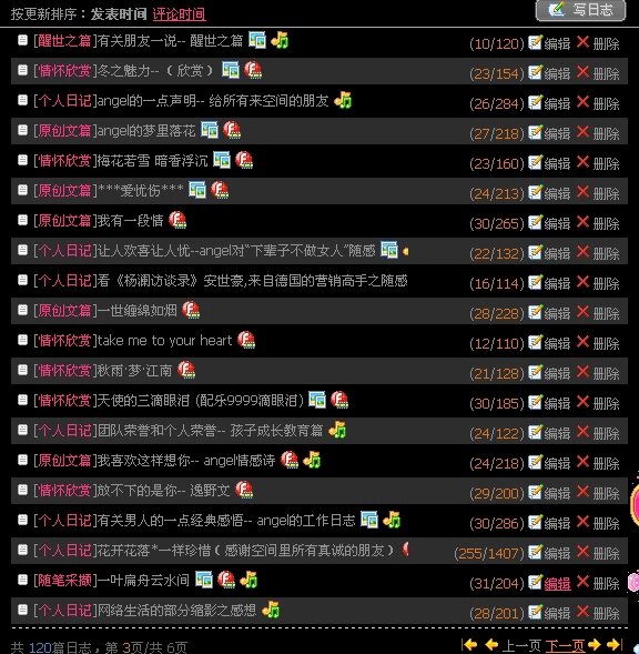 那时的日志稚嫩、随意、朴实,那时的空间简单、纯净、整洁,那时不懂得走空间,以为在空间就是写自己看的、想的、悟的,和别人无关,那时就任由指尖将风中的思绪刻画,将美好堆放,让心随风走,让情为雨留,那时会觉得奇怪怎么会有人到我的小田园来,那时就跟着脚印来到了很多人的空间,才知道外面的世界是如此的绚丽多彩,才知道外面的天空是多么的蔚蓝广阔。