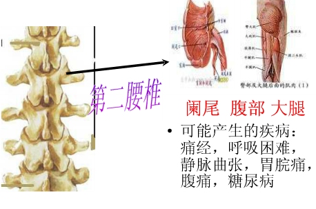 第一腰椎段:结肠功能失调、便秘、腹泻、腰痛、下腹痛