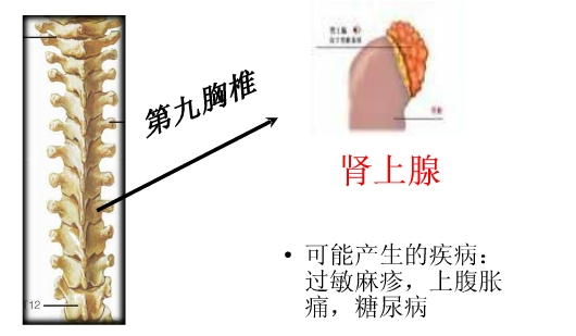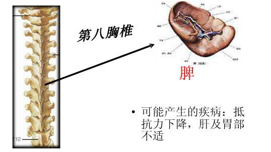 第八胸椎段:免疫功能低下、肝胆病、糖尿病、呕逆、尿频