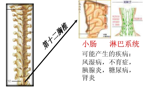 第十二胸椎段:下腹疼凉、疲劳综合症、不孕症、风湿症、生殖器官表面痛痒