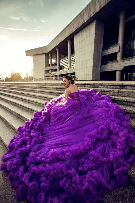 大气的裙边,奢华的底裙,加上这薰衣草的颜色,新娘们看到要忍不住尖叫了。
