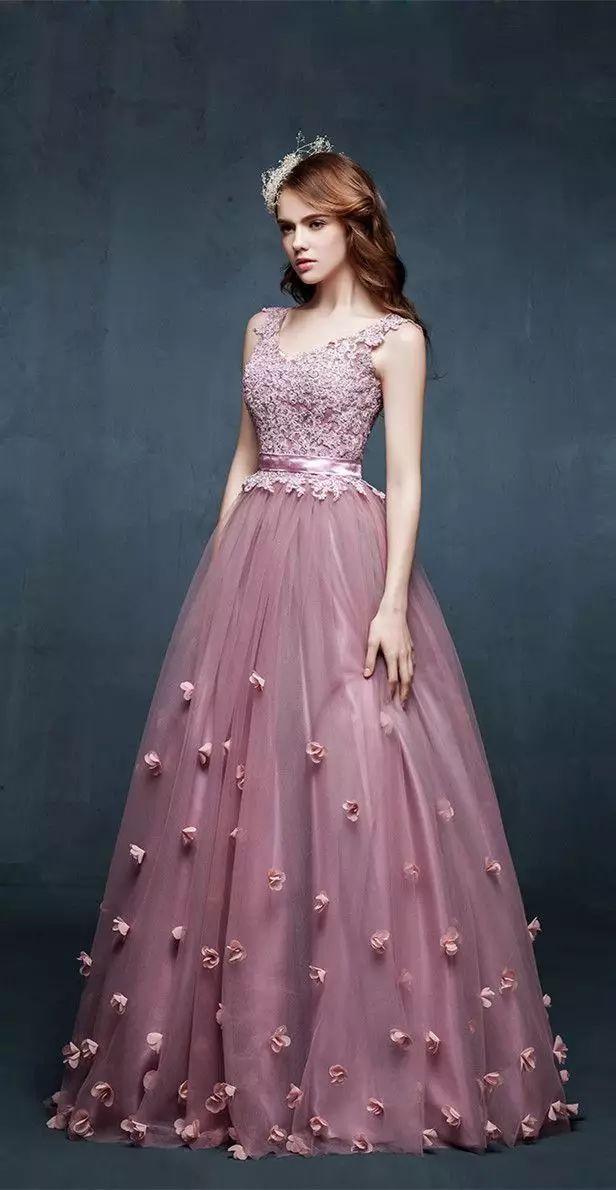 粉色系婚纱,加上纱的质感,给人一种轻柔灵动的感觉,在婚礼的庄重中调剂出一种温婉气质。