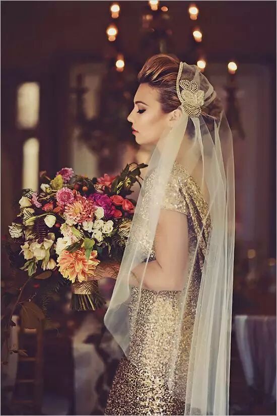 金色系婚纱,复古典雅,大气奢华,让人眼前一亮,一种BlingBling的感觉。