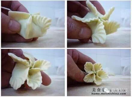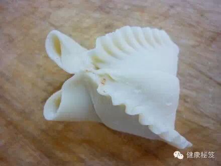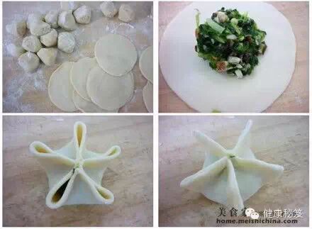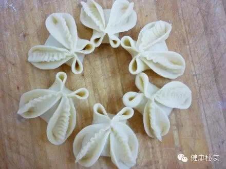 这些最新的饺子包法,看了图文你会觉得很简单,无论大家在国内还是海外,都转起来、学起来吧,绝对值得!一、蝴蝶蒸饺(学会你就帅呆了!)原料:面粉200克,开水100克,肉馅150克制作方法:面粉用开水烫成面团,揉光揉匀。下剂子,擀成圆皮。如图所示将面皮的两边卷上来,留下小半边不卷。把面皮翻过来,放入馅心。将馅心包起来,把两条直边捏起来。没翻卷的面皮做成眼睛捏出翅膀的花纹把两只翅膀翻过来做好的蒸饺蒸熟二、牡丹蒸饺(太拉风了)原料:面粉200克,开水100克,肉馅150克,熟蛋黄4个制作方法:面粉加入开水烫成面团,揉光搓条下剂子,擀成圆皮放入馅心均分五点向中心捏在一起,形成如图所示的形状把相邻的两边再相粘结在每片花瓣上剪两刀,就形成了牡丹花的花瓣把熟蛋黄碾碎,放入花瓣中作点缀做好的蒸饺放入蒸笼蒸熟放入用酱汁画好图案的盘中三、青菜蒸饺原料:面粉200克,开水100克,青菜500克,鲜香菇50克,发好木耳50克,笋50克,麻油5克,盐、鸡精、糖适量制作方法:面粉用开水烫熟,稍微冷却一下,揉成面团青菜用开水烫一下,和香菇、木耳、笋一起斩碎,挤干水分,加盐、鸡精、糖和麻油调好口味把面团搓条,下剂子擀皮,包入馅心。把圆皮均分5点,粘在一起形成5条边,把口捏紧用拇指和食指捏出花边,形成5个叶片。把叶片底部向上拉起和相邻的叶子在中间相粘把做好的青菜蒸饺放入蒸笼大火蒸6分钟左右即可四、翅膀蒸饺这是一道比较简单易学的花色蒸饺。馅心可以自己选择,甜的,咸的,荤的,素的都可以。今天我用的是素菜馅。原料:面粉200克,开水100克,青菜500克,木耳50克,鲜香菇50克,笋50克,麻油5克,盐、糖、鸡精适量制作方法:青菜洗净入开水锅烫一下,和洗净的木耳、香菇、笋一起切碎,挤去多余水分,加盐、鸡精、糖和麻油调好口味面粉用开水冲烫揉成面团【做蒸饺的面团一般都用开水和面,这样面团筋度减小,可塑性强,利于造型】。下剂子,擀成圆皮包入菜馅,捏成月牙饺用拇指和食指捏出花边两边向后捏,捏出一对翅膀放入蒸笼蒸熟即可五、鸳鸯蒸饺(亲手为Ta包一份浪漫)说起这鸳鸯饺,也是中国饺子文化中的一个不可为之叹赏的亮点。它色彩鲜艳,造型美观,质软滑嫩,滋味鲜美,还可同时吃出不同味道面皮:面粉250,水120—130克。[/L]馅心:芹菜250、肉末150、盐、味精、鸡精、胡椒粉、料酒。做法:①面粉开窝,分次加水和至软硬适中的面团,醒置20分钟。②芹菜焯水至七成熟,切末备用;肉末加