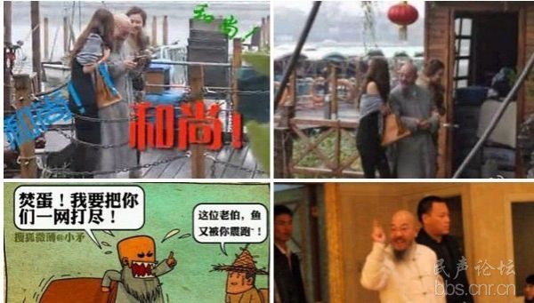 北京后海惊现老和尚与时尚女玩“船震门”。有网友拍摄下了据称某知名寺院方丈与两位妙龄女子在后海约会的画面,称目击了高僧与女子玩“船震”。老衲实在把持不住!只能转发上来求鉴定。