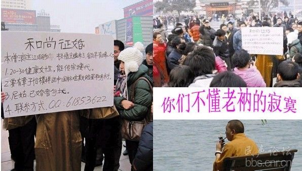 光头男子自称和尚街头征婚尼姑已婚勿扰