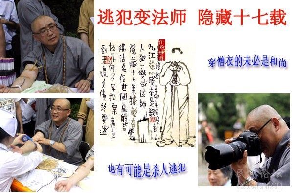 九江徐心联,本是杀人犯。一变成法师,隐藏十七年。据说在学佛,沽名俗世间。万般皆放下,何不早投案?远走到天边,欠债终要还。