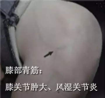2.小腿有青筋静脉曲张严重者往往发生腰腿疾病,风湿关节痛。特别多见于久站的老师,久行的农民或喜欢走热时冲凉的人士。因为寒则入骨伤筋,这是许多人日常生活中不够注意的问题,最后久积成疾,甚至影响高血压很难下降。