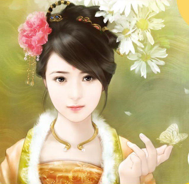 46、花爱张丽华:南朝陈后主妃,发长七尺,光可鉴人,眉目如画,玉树映花。