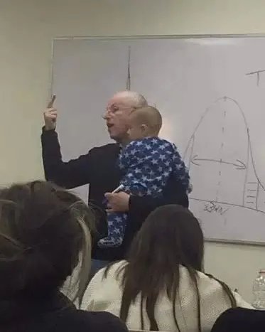 原来是他的学生因没有人帮忙看孩子,就带着孩子来上课。结果课堂上孩子开始哭闹,这个学生很尴尬起身抱起孩子准备离开,结果出乎意料的是,这位教授接过孩子哄完接着开始讲课。