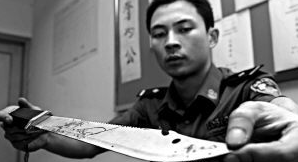 就在此时,修车师傅猛地抽出怀中的右手,手里拿的并非是一沓钞票,而是一把雪亮的西瓜刀,他以迅雷不及掩耳之势刺向了对方的心脏,然后在同一部位又补了两刀,其父没有发出任何声响便栽倒在地。