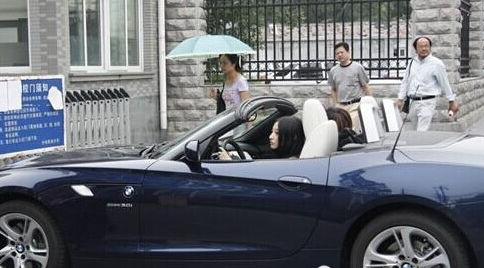 时尚女子则一直坐在宝马车里,得意洋洋的看着这场闹剧的上演。