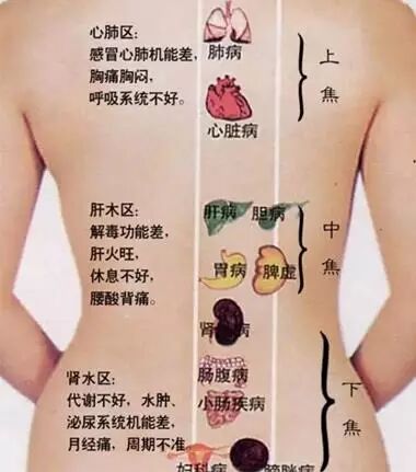 后背的保养背部是以脊椎为中心的整个人体的全息缩影,人体的五脏六腑均可在背部找到相应的对应区,如背上部对应肺和心脏,背下部对应脾、胃、肝、胆,腰部对应肾、膀胱、大肠和小肠。