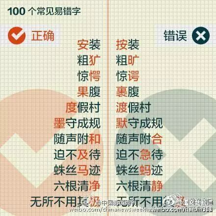 “甘败下风”还是“甘拜下风”?“貌合神离”还是“貌和神离”?“图文并茂”还是“图文并貌”?“两全其美”还是“两全齐美”?如今电脑用多了,提笔忘字是常见的事。100个常见易错字,戳图自测↓↓你能写对几成?