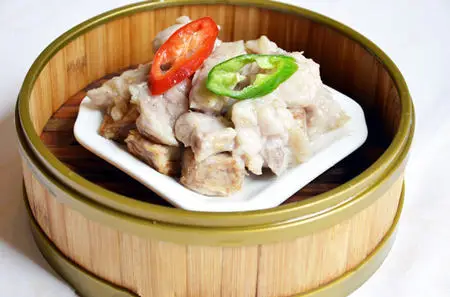 材料:猪小排、芋头、食盐、鸡精、生抽、淀粉、植物油、芝麻油、白砂糖。