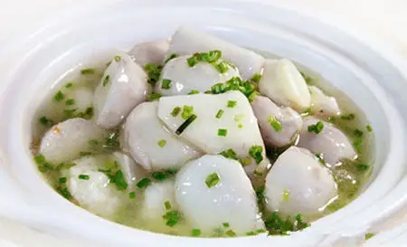 【原料】:水瓜200克,蚬肉100克,香芋200克,姜末、葱段少许,油、盐、味精、鲜奶各适量。