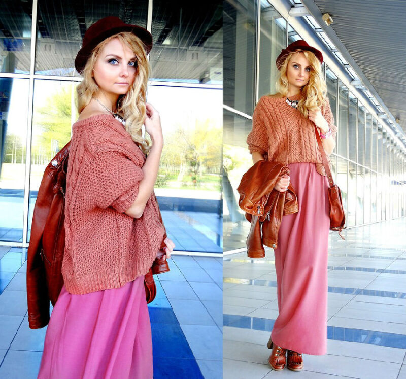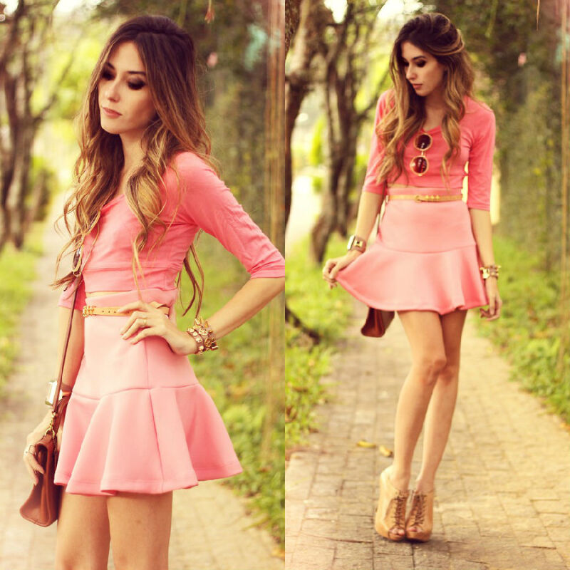粉红色系的的搭配,让整个人看上去柔和很多。