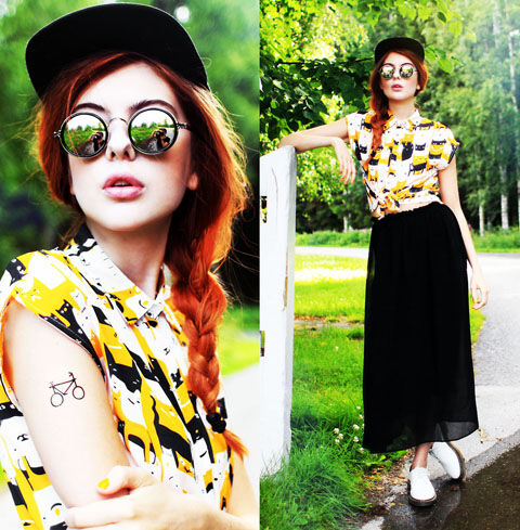 红白搭配是大胆的结合。上身着白色T恤,下身穿红色窄裙,显得热情潇洒充满个性。
