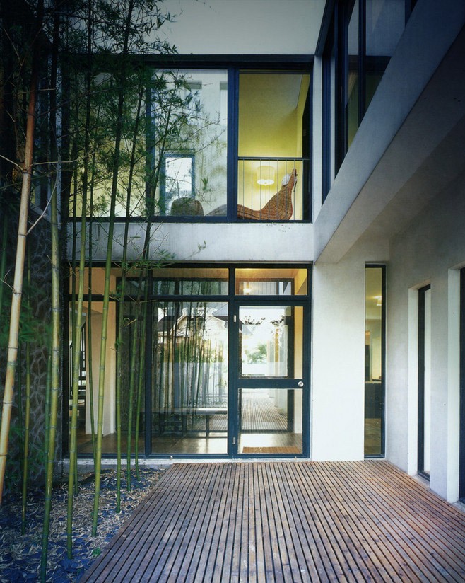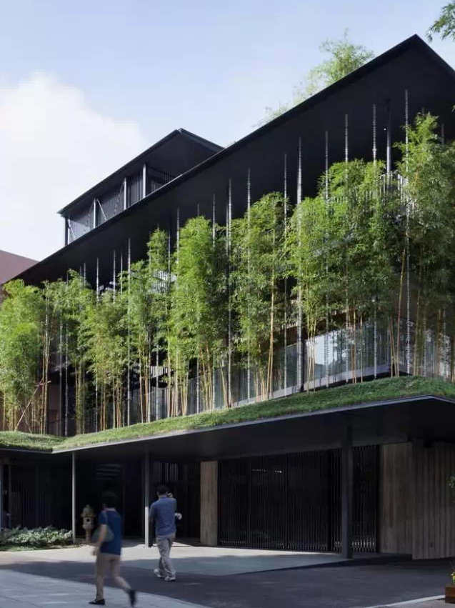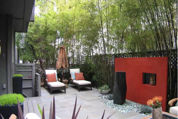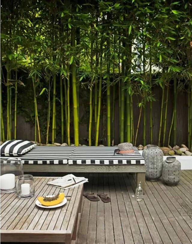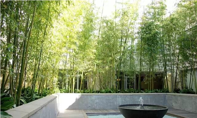 以竹类做绿篱,可为修剪过的植物造型与建筑物的外观相呼应,使周围环境更为协调。