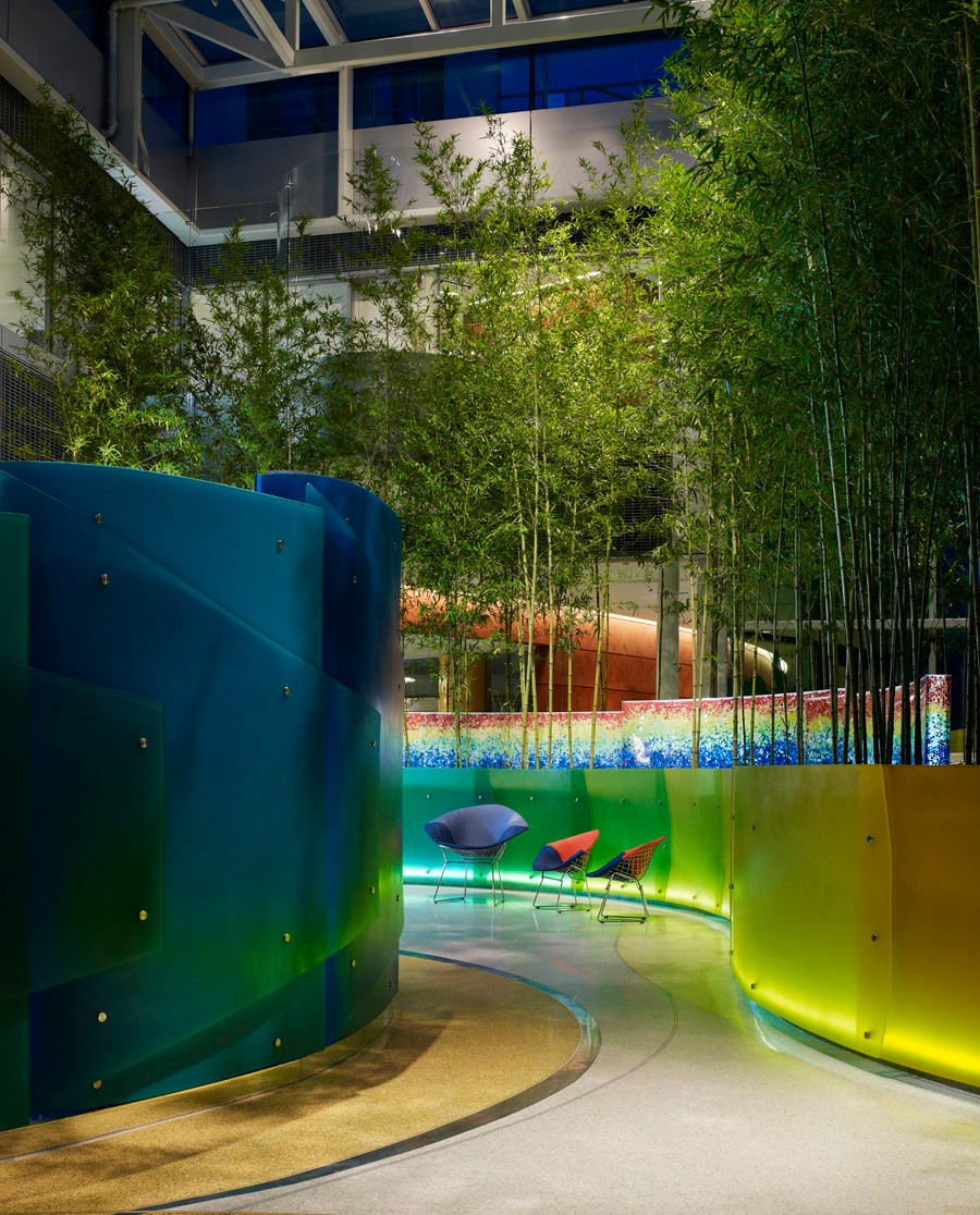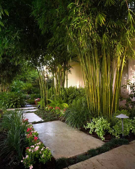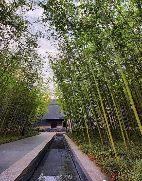 应用丛生型的竹类,如绿竹等,在空间中衬托或指引出景物,使得景物因其株形大小、形态外貌、色泽和质地更增添优雅。