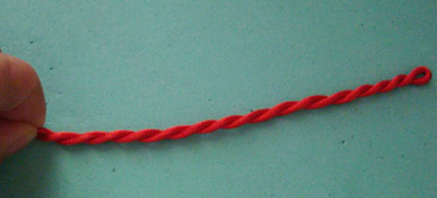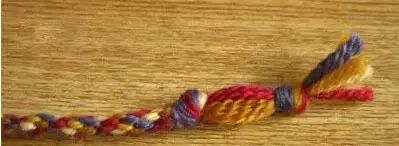 第七步:编织到合适长度以后剪断,并烧粘线头,余下的两根线再编织一个双联结