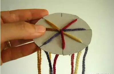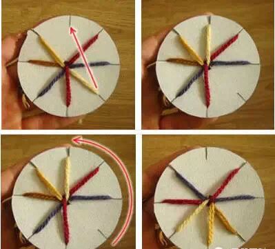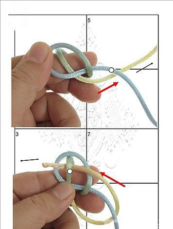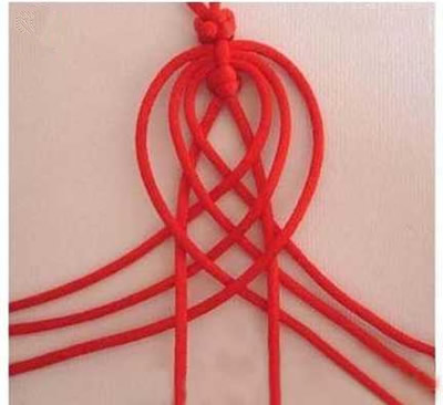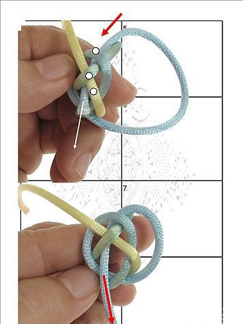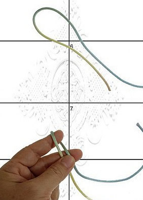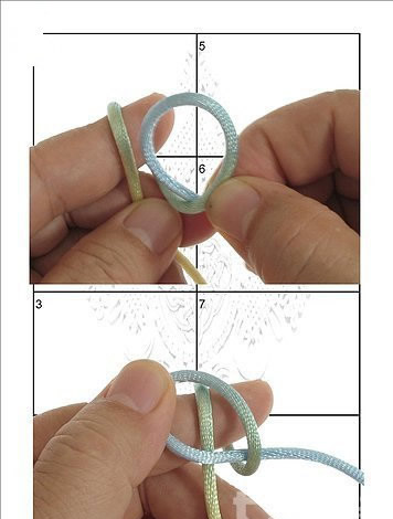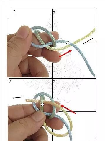 第三步:在竖轴线下端再编织一个双联结,固定,接下来的所有步骤就从这个结开始啦
