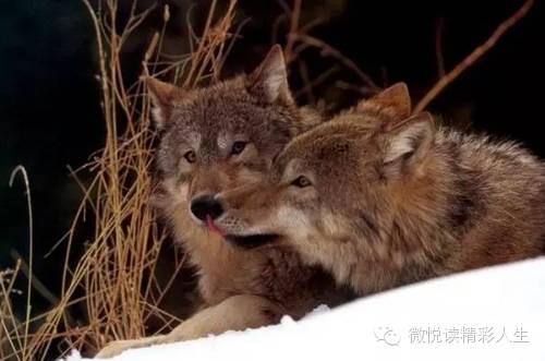 他死了,他的尸体挨着她的尸体只是隔着个笼子的栏栅,公狼底下的雪都化成了冰;眼里流着雪泪。老人说,狼是最忠诚的,爱人为了他死了他是不能苟活的,这是他们爱的原则——不会放弃爱人。所以一只狼一生只有一个伴侣.....