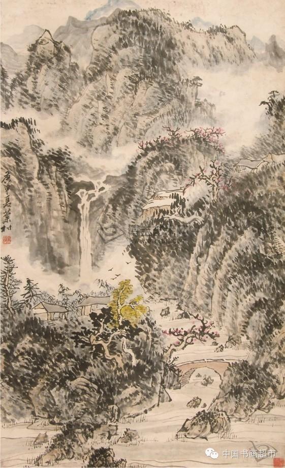在黄先生的艺术里,我们不会忽略他极深的中国画传统功力。这里有他作为一个天才画家的独特悟性,虽然未有名家师承,却能转益多师,在古人真迹中吸取,在真实自然中验证,使他终于得到传统绘画的种种精髓。他确实继承了新安派的优良传统,既亲近自然,领悟自然,继承传统,又有所发扬并丰富绘画的语言风格。黄先生的笔墨功力很厚,他处理大幅山川画面,笔法灵动多变,几乎不拘于某家门派,从而达到气至法备,法为我用的地步。他处理画面,布局严密,层次清晰,虚实相生,却又笔墨松活,不板不滞,干净利落,既不拖泥带水,而且皴染分明,绝无黄宾虹先生所指“兼皴带染”之病。微信号zgshcs
