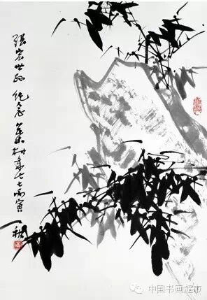 黄先生擅画竹,晚年有人赠“江南一枝竹”之誉。中国画家喜画竹,从理念上讲是以竹喻人,其瘦硬坚挺,不畏风雪,经冬不凋,洁净不垢种种优点,都是中国人尤其是知识分子景仰的精神。但从艺术上讲,却是因其在“书画同源”观念上追求书体抽象美,对画家来讲,更是笔墨抽象美的高度体现,虽只是数竿竹,疏疏叶,却包含了构图、比例、疏密、黑白、速度、力度等等形式因素。从而一出手就把画家的修养、人品、功力、悟性清清楚楚地摆在纸上。近见电视画面上常有什么“竹王”自吹的画家,画格鄙俗不堪,笔墨无法,不过是伪劣商品广告一类货色。黄先生画竹,功力已够火候,瘦而不枯,劲而不狂,疏简而腴润。《双清图》画梅竹,以梅为主,确是风神俊朗,疏密得度,赏心悦目,书画俱佳。微信号zgshcs