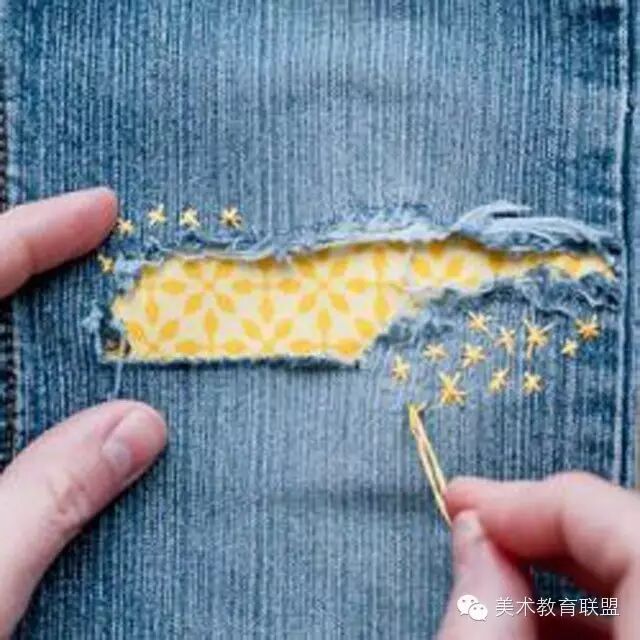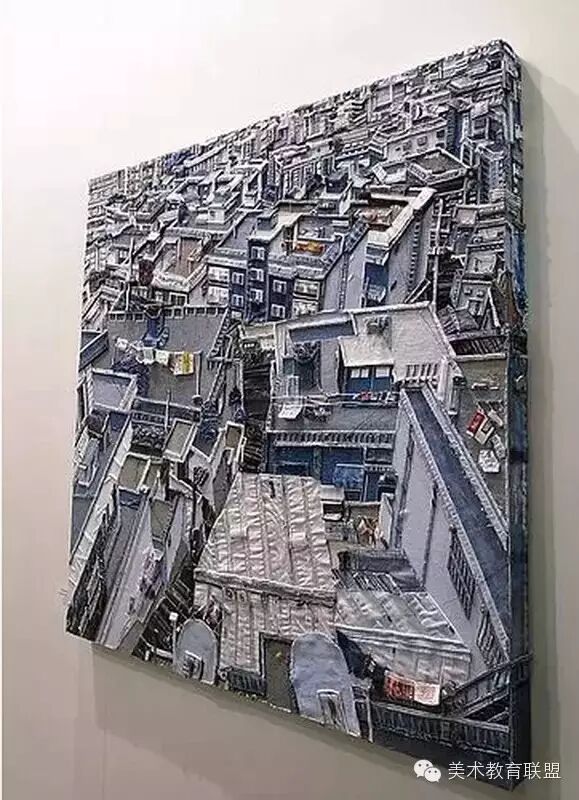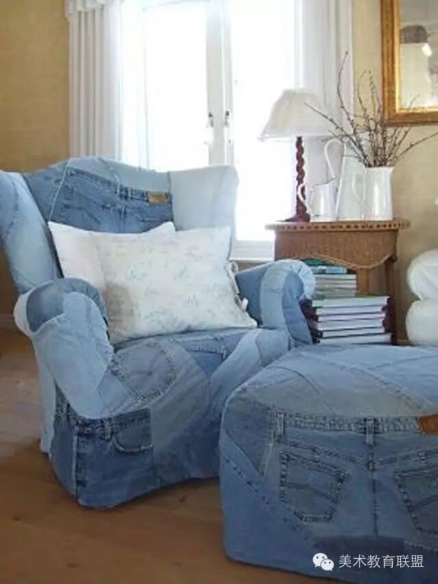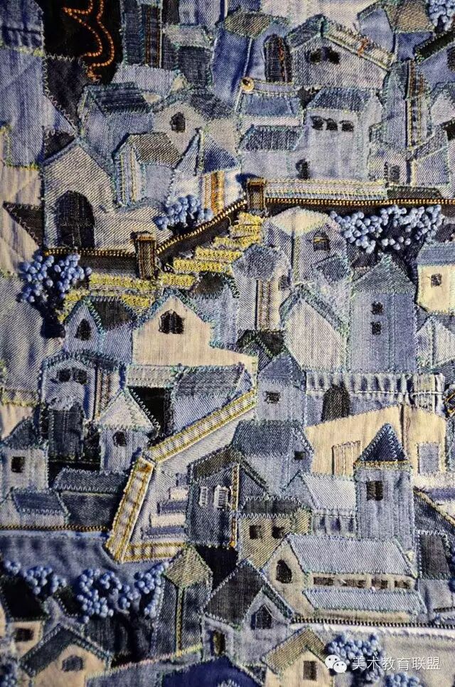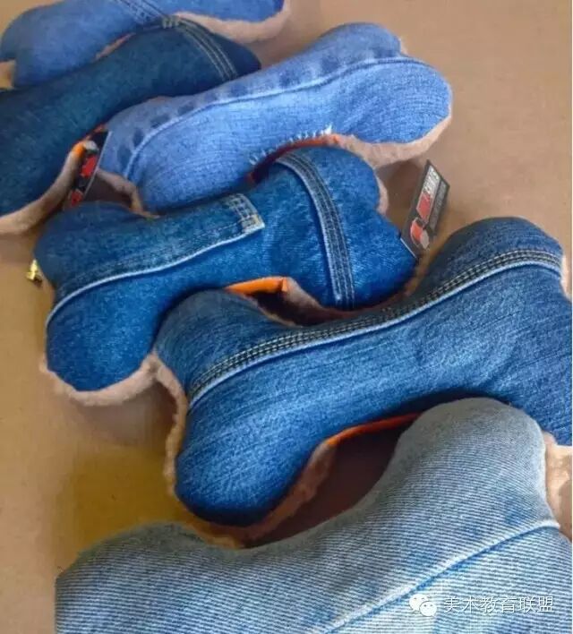 运用牛仔的各种质感创作的拼贴画,给人眼前一亮。