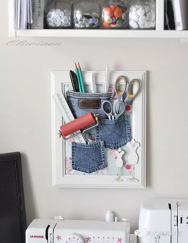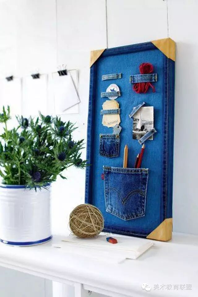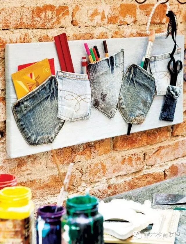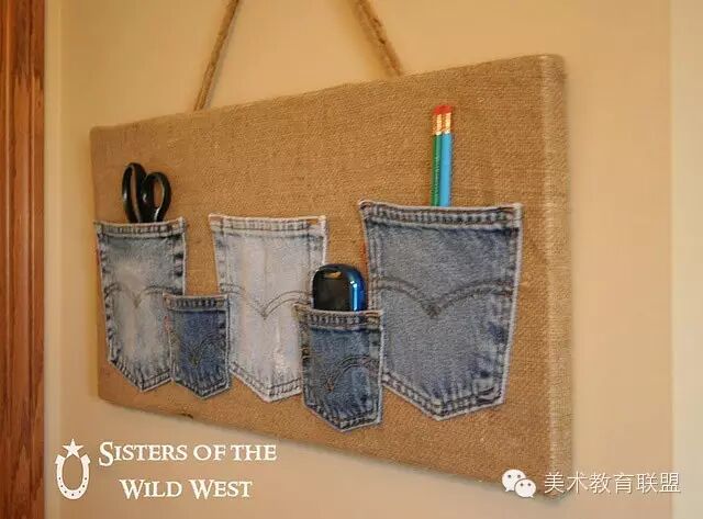 各种牛仔口袋的收集组合,变成既是装饰画又是实用的收纳袋。