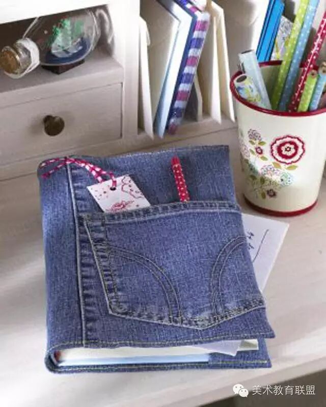 废旧牛仔裤巧妙运用,用来包书皮效果也很不错哦!
