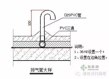 ▲ 屋面排气管设置大样(上人屋面根据使用需要可采用盲沟做法)