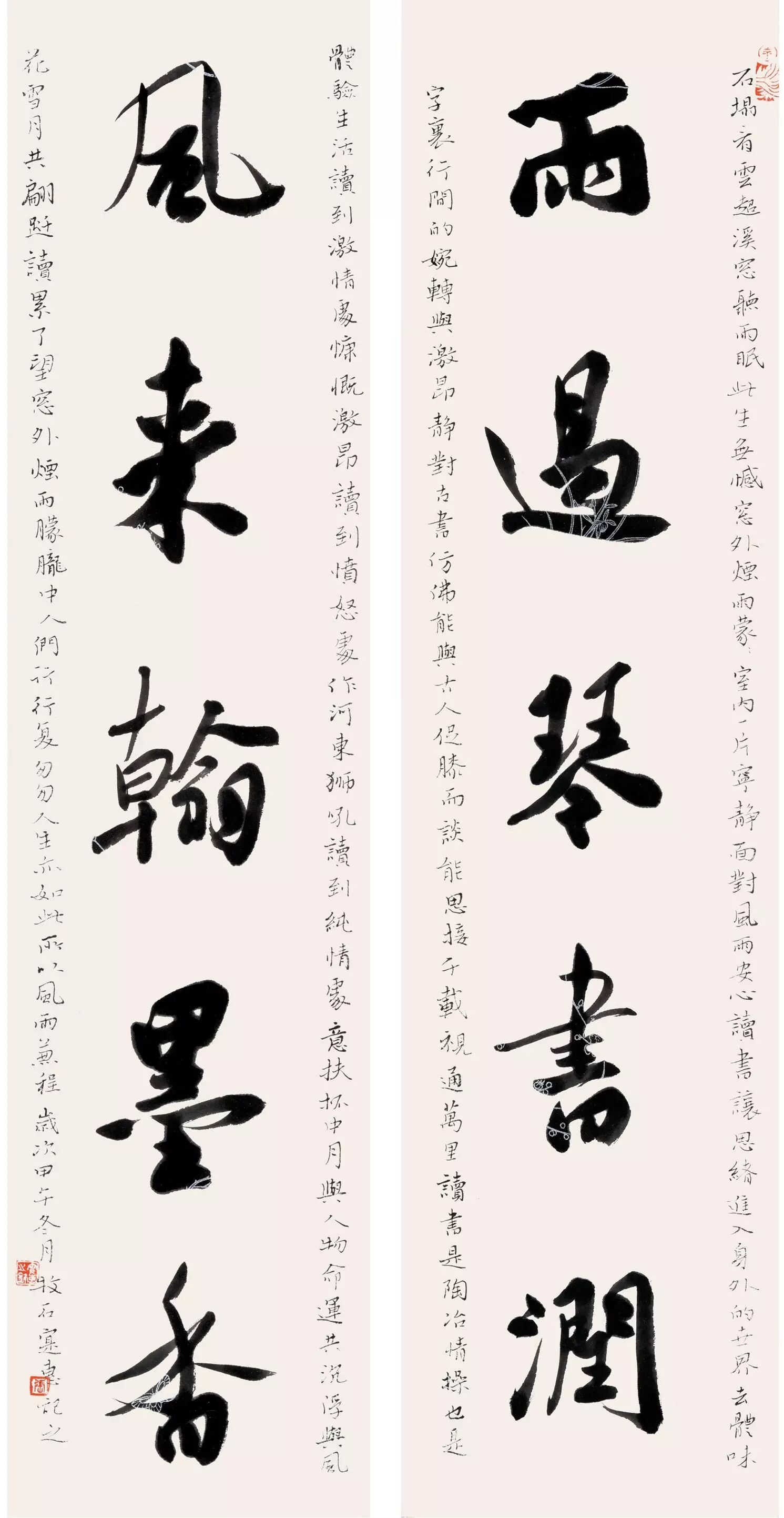 今有好友实惠,聪慧擅书,深悟书学妙理。用笔清健挺朗,徐疾重轻,收放自如,放得开亦收得拢,循法有度,得大自由。结字疏密有致,匠心独造,效古出奇,时出新意。章法虚实相生,错落自然,似出心杼,气息连贯,如流水行云。书风取法魏晋,观照当下,注重字势开合、空间分布、形式运用,各审美元素,尽用其极!故作品通篇入古融今,才情纵横而出,寓内心之静定,于肆意之流动。真可谓潇洒出尘,大雅风神!