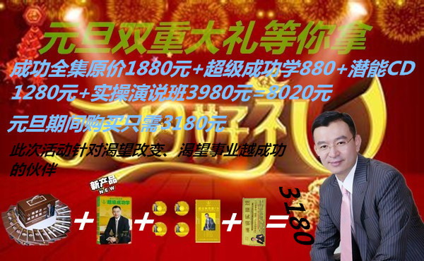 陈安之成功全集原价1880元+超级成功学880元+潜能CD1280元+《实操演说班》3980元=8020元,元旦期间订购只需3180元