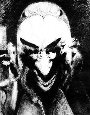16、当你直视时,你可以看到一幅刻板严肃的面具,把它的面部表情和下两幅照片相比较,你会发现它面部表情的变化取决于面部的倾斜角度。