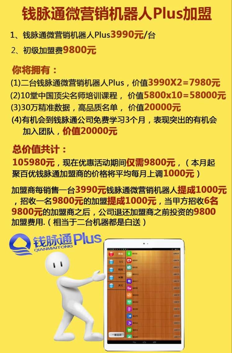 钱脉通微营销机器人Plus合作方案