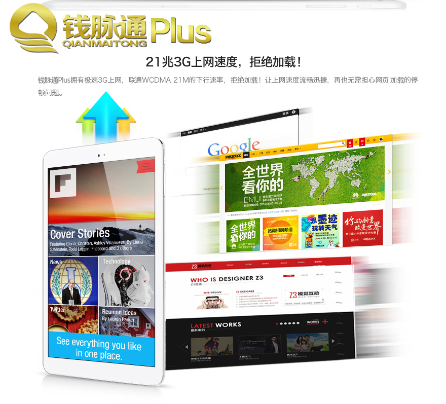 钱脉通微营销机器人Plus版拥有极速3G上网,联通WCDMA 21M的下行速率,拒绝加载!让上网速度流畅迅捷,再也无需担心网页加载的停顿问题。