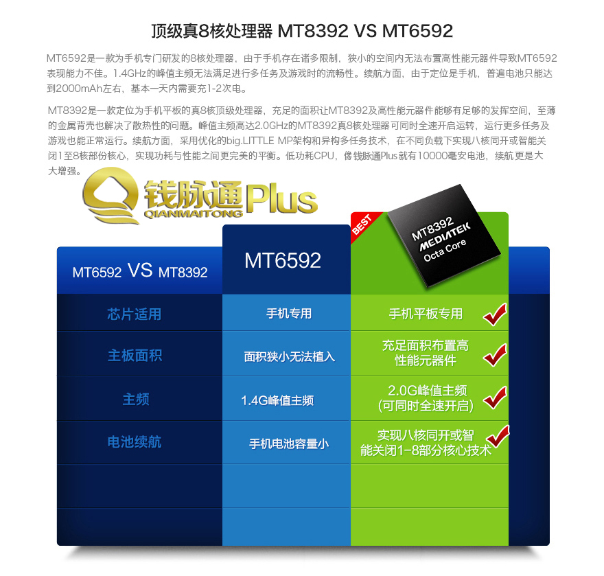 MT6592是一款为手机专门研发的8核处理器,由于手机存在诸多限制,狭小的空间内无法布置高性能元器件导致MT6592表现能力不佳。