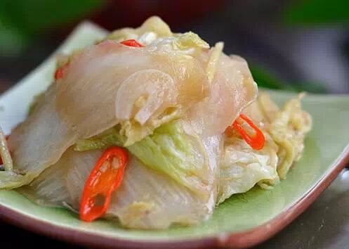 13、腌渍好的泡菜,浇上一点辣椒油吃起来味道酸辣开胃