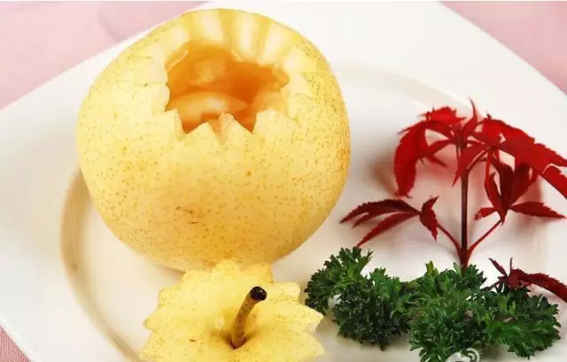 做法:先把白梨挖去核,将蜂蜜填入,加热蒸熟。每日早晚各吃1个,连吃数日。