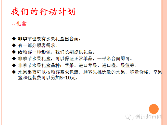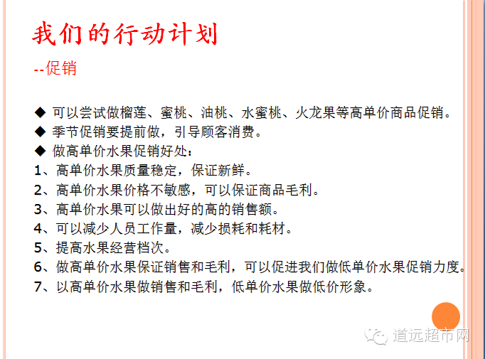 下面分享一份门店日常管理课件,没有一招制敌的绝技,只有通过基础工作和细节管理来提升水果经营水平,展示基本功。