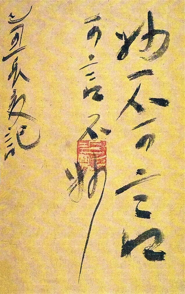 冲墨之法,其实并非书写时使用的方法,它并不是与笔画的完成同时的。而是在点画写完之后,趁笔画尚湿以水点于笔画之上、让墨冲出画外的用墨方法。现代派书法作品中多用之,不过与上述的八种用墨方法相比,此法不必多用,只需要时为之就可以了,因为它的使用并不具有与书写同步的不可逆性。