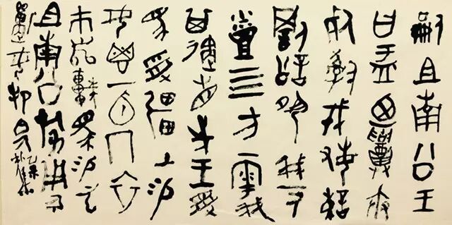与干墨、焦墨属于同一墨法序列,但在表现程度和审美效果上,渴墨介乎干墨与焦墨之间,时见飞白之线条,用得好,亦有点睛之效果,常常用于行草书,篆书和魏楷也时用此法,用得好,有苍茫,老辣的艺术风貌,清人吴昌硕可谓这方面的高手。