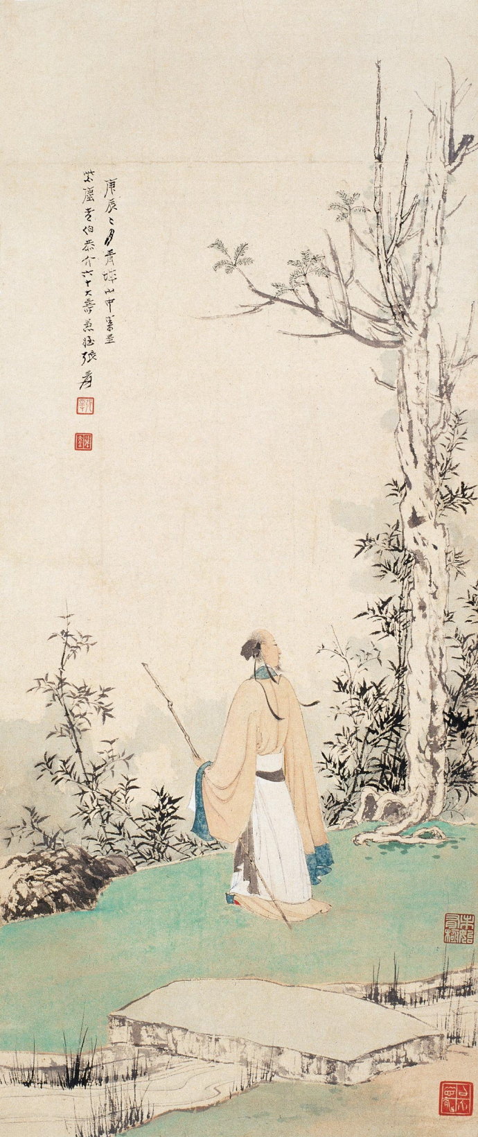21 远望云山隔秋水,近看古木俑陂陀。居然相对六君子,正直特立无偏颇。
