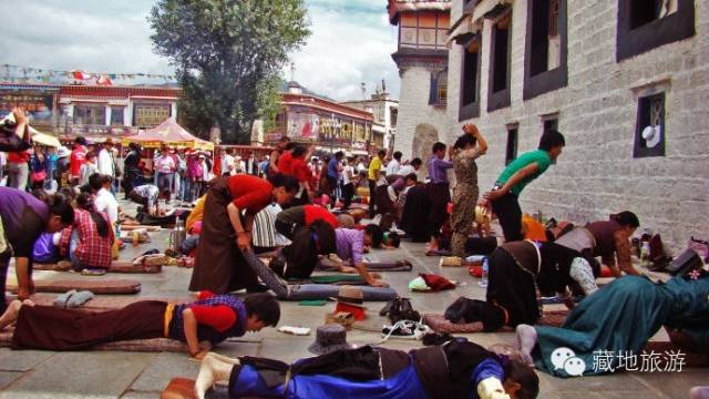 假如人生不曾与西藏相遇,我不会看到,在清晨的布达拉宫前,一路磕头来到布达拉宫朝拜的信徒们。