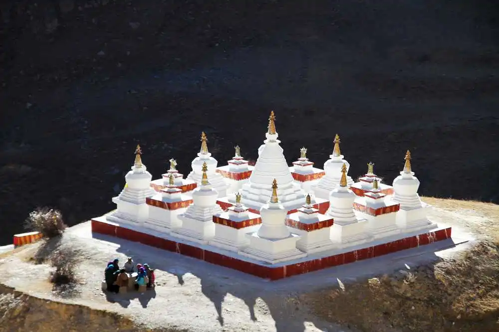白塔、经幡:白塔是藏地的一个焦点,一个标志。散落在寺院、村头,或是山的垭口。白塔代表善的力量,塔身上的不同部位代表着组成宇宙世界的几大元素。在没有寺庙的地方,白塔成了藏民寄托信仰的地方,清晨或傍晚,拿着转经筒,转上数圈,视为功课。同时,几乎在每个山垭口,每个寺庙前,每个吉祥的山谷,每户人家的屋顶,都会有随风猎猎作响的经幡。按照藏传佛教的说法,风每吹动一次经幡,就相当于诵读了一遍经。这无穷无尽的诵经声会广布四方,充满天地之间。看风起幡动,或是匆匆过客的是心动!